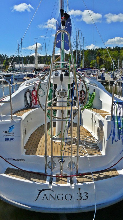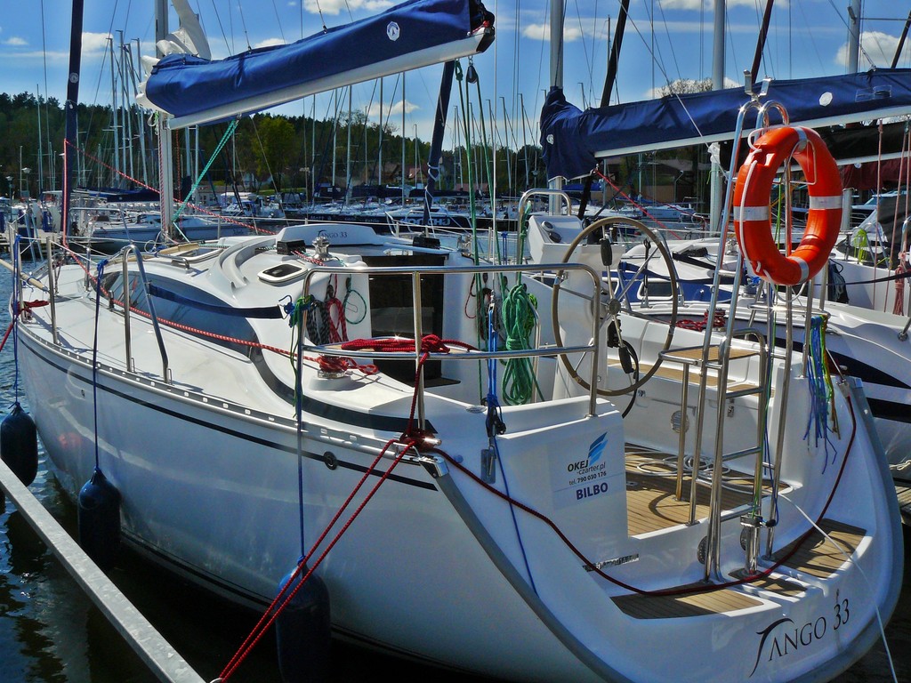 Jacht TANGO 33 - największy model z całej serii jachtów typu Tango o klasycznej i harmonijnej lini kadłuba. Bardzo przestronne wnętrze z 3 zamykanymi kabinami oraz udogodnieniami typu klimatyzacja, ogrzewanie, lodówka, ciepła woda, prysznic, toaleta morska elektryczna dają maksimum komfortu bytowania. Bezpieczeństwo zapewnia system refowania grota z kokpitu. Jacht Tango 33 to idealny kompromis doskonałych walorów nautycznych i hotelowych. Jest to pierwsze TANGO 33 w ofercie firm czarterowych na Mazurach !!! Jesteśmy pewni, że wspaniale dopełni popularną serię modelu "TANGO" na Mazurach.